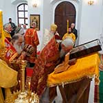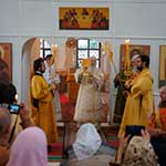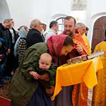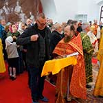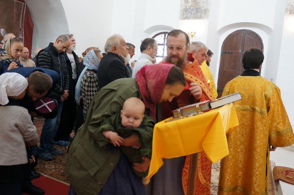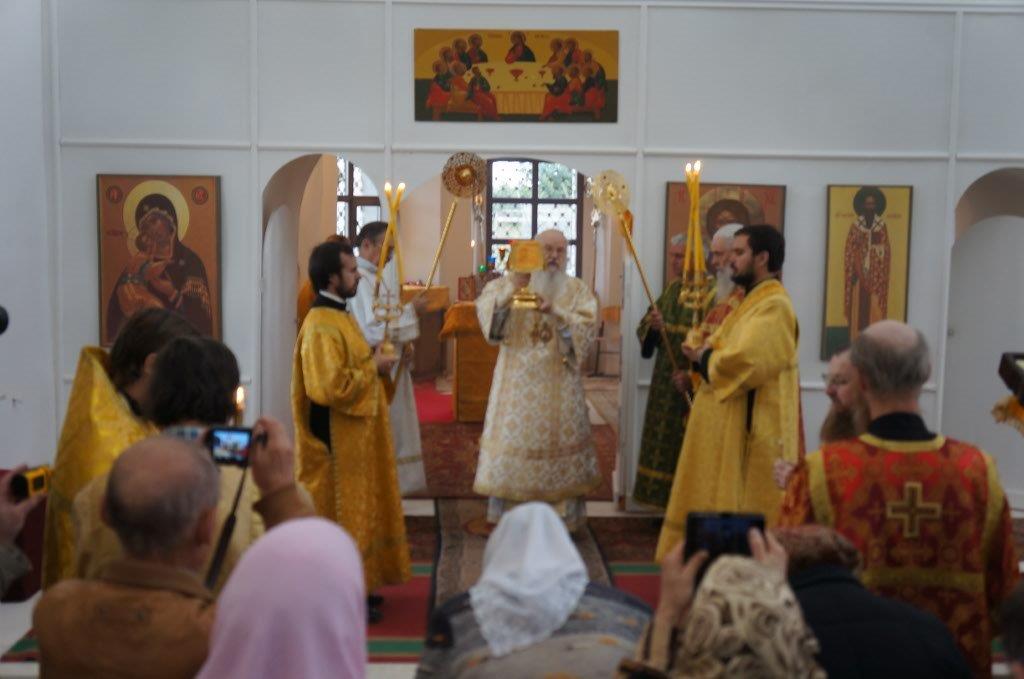 Божественную Литургию возглавил Глава Владимирской митрополии, митрополит Владимирский и Суздальский Евлогий. Владыка обратился ко всем присутствующим со словами проникновенной проповеди, пятьдесят человек причастились Святых Христовых Тайнств!!! Как сказал Владыка Евлогий " и в городе такого не бывает". Храм сиял белизной, лица причастников и других участников литургии сияли счастьем, глаза светились радостью, а на лицах всех присутствующих играли улыбки. Незабываемые ощущения Божией благодати.