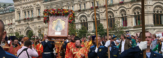 - что идешь под предводительством святых, которых иконы в нем шествуют,